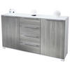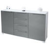 Modern, praktisch und hübsch: Sowohl die 4 Schubladen als auch die zwei Türen des Linio Sideboards sind mit 30 cm langen silbergrauen Winkelgriffen aus Metall verziert.