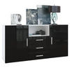 Stauraum: Das Sideboard mit Schubladen und Türen ist ein wahres Platzwunder - 3 Schubkästen, sowie 1 offenes Fach und 2 große Türen, dahinter je 2 geräumige Fächer bieten viel Stauraum für allerlei Gegenstände.