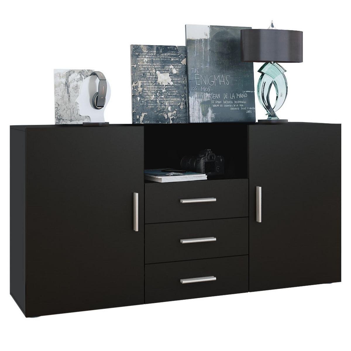 Stauraum: Das Sideboard mit Schubladen und Türen ist ein wahres Platzwunder - 3 Schubkästen, sowie 1 offenes Fach und 2 große Türen, dahinter je 2 geräumige Fächer bieten viel Stauraum für allerlei Gegenstände.