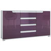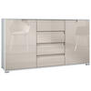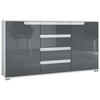 Öffnung: Die moderne Kommode mit Schubladen und Türen ist mit ist mit dezenten Griffmulden ausgestattet. Die Schubkästen des Schranks verlaufen fast geräuschlos auf Teleskopschienen aus Metall, diese sorgen für eine leichte Handhabung der Schubladen