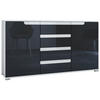 Design: Der Korpus der Kommode in Weiß matt und die Fronten in Eiche sägerau, Griffmulden in Schwarz Hochglanz sorgen für ein modernes, wohnliches Ambiente. Oder wählen Sie aus vielen, weiteren Farbkombinationen das passende Design.