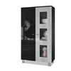 Design: Der Korpus der Vitrine in Schwarz matt und die Fronten in Schwarz Hochglanz und Eiche Natur sorgen für ein modernes, wohnliches Ambiente. Oder wählen Sie aus vielen, weiteren Farbkombinationen das passende Design.
