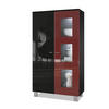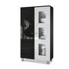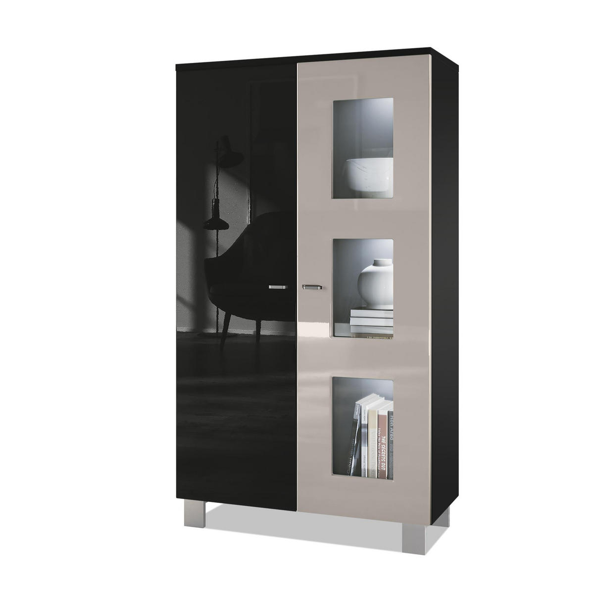 Design: Der Korpus der Vitrine in Schwarz matt und die Fronten in Schwarz Hochglanz und Sandgrau Hochglanz sorgen für ein modernes, wohnliches Ambiente. Oder wählen Sie aus vielen, weiteren Farbkombinationen das passende Design.