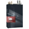 Stauraum: Der moderne Vitrinenschrank mit einer Rückwand in Holzoptik ist ein wahres Platzwunder – hinter den 2 Türen verbergen sich 6 schwarze Fächer und ein farbiges, welche viel Stauraum für allerlei Gegenstände bieten.