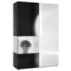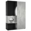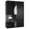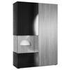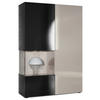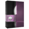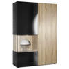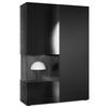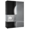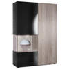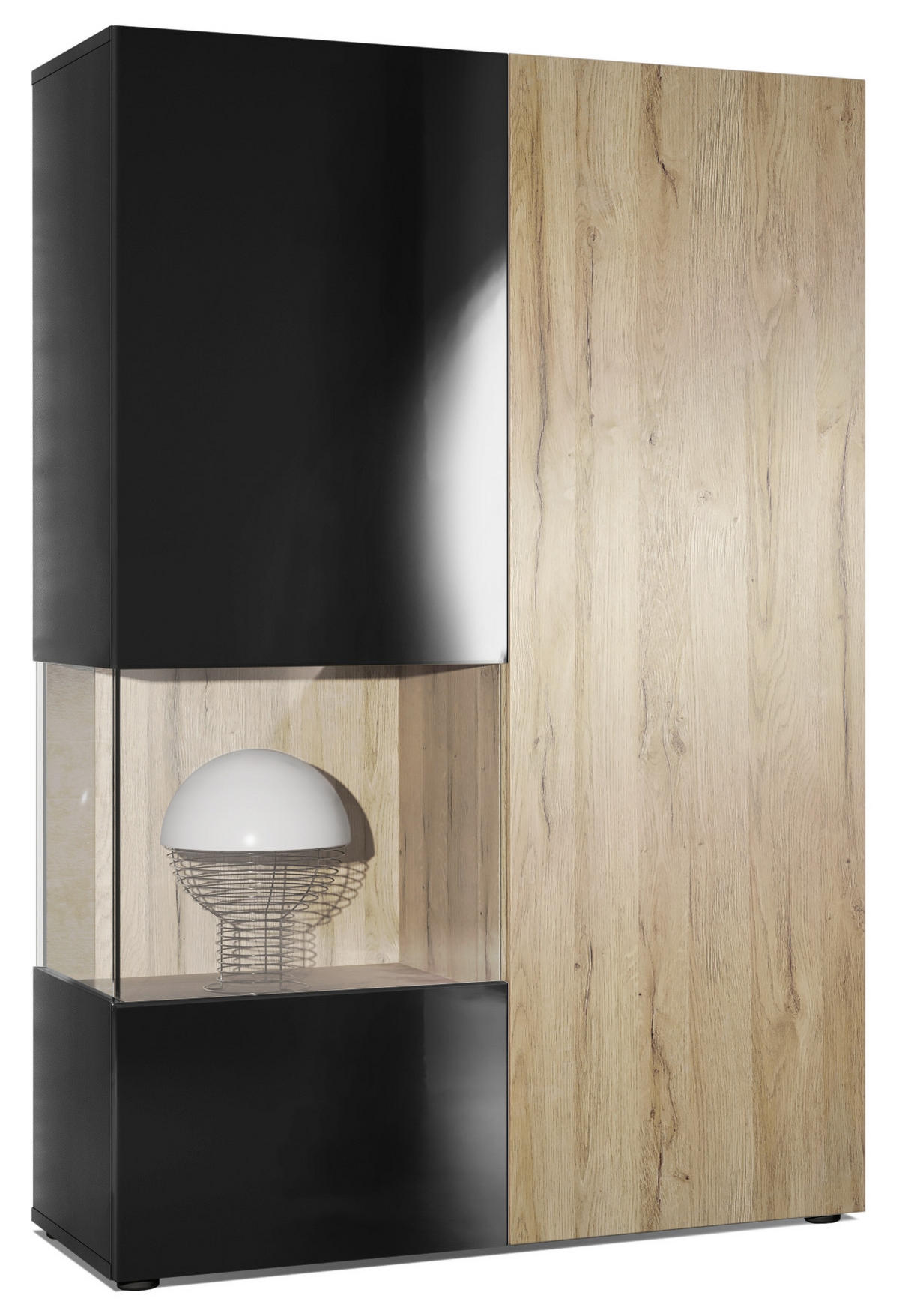 Design: Die hochglänzende Tür mit Glaseinsatz in Schwarz Hochglanz verleiht dem Möbelstück Eleganz. Der hinter den Glasscheiben sichtbare Cube in Eiche Natur und die große Tür sind auch in anderen Farben erhältlich. Der Korpus der Vitrine ist Schwarz matt.