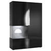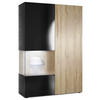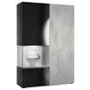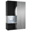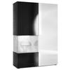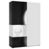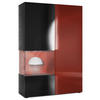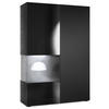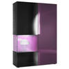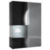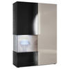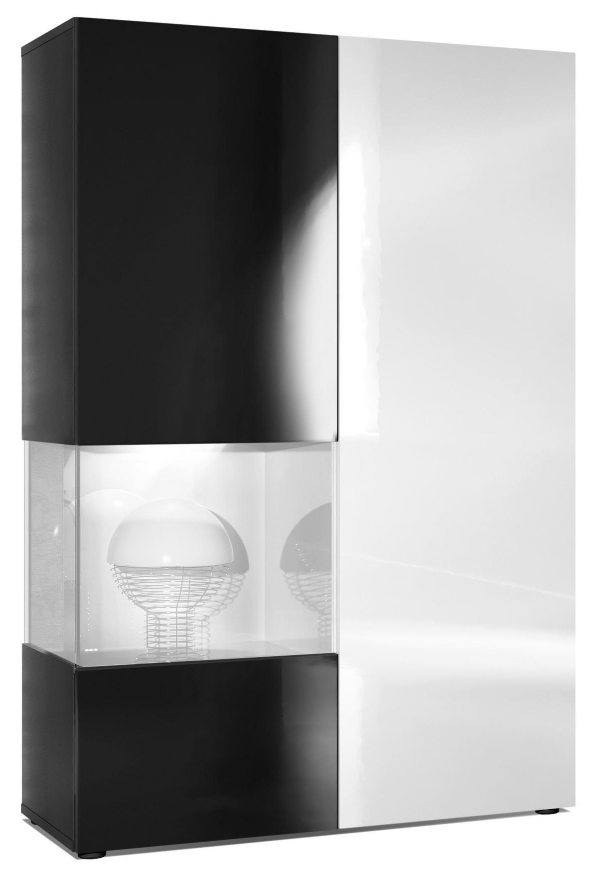 Design: Die hochglänzende Tür mit Glaseinsatz in Schwarz Hochglanz verleiht dem Möbelstück Eleganz. Der hinter den Glasscheiben sichtbare Cube in Weiß Hochglanz und die große Tür sind auch in anderen Farben erhältlich. Der Korpus der Vitrine ist Schwarz matt.