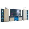 Lieferumfang: Enthalten sind 2 Vitrinen, 1 TV-Board, RGB LED-Beleuchtung, eine detaillierte bebilderte Anleitung und das notwendige Montagematerial. Maße der Wohnwand ca. (BxHxT): 329 x 134 x 35 cm