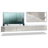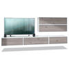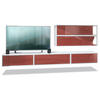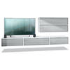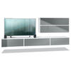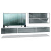 Moderne Wohnwand bestehend aus 5 Wandschränken, allesamt ausgestattet mit einer Klappe, die sich durch einen Aluminiumgriff öffnen lässt