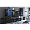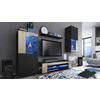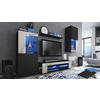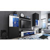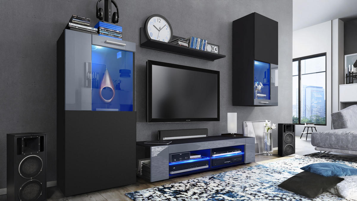 Lieferumfang: Enthalten sind jeweils 1 TV-Lowbard, 2 Design-Vitrinen und 1 Wandregal, inkl. LED-Beleuchtung in Blau, eine detaillierte bebilderte Anleitung und das notwendige Montagematerial. Maße der TV-Wand gesamt in cm (BxHxT): 300 x 190 x 39