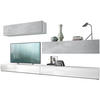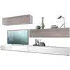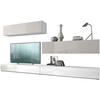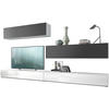 Stauraum: Die moderne Mediawand ist ein wahres Platzwunder - 2 hängende Klappen und 2 Sockelelemente mit je 2 Fächer dahinter bieten viel Stauraum für allerlei Gegenstände im Wohnzimmer.