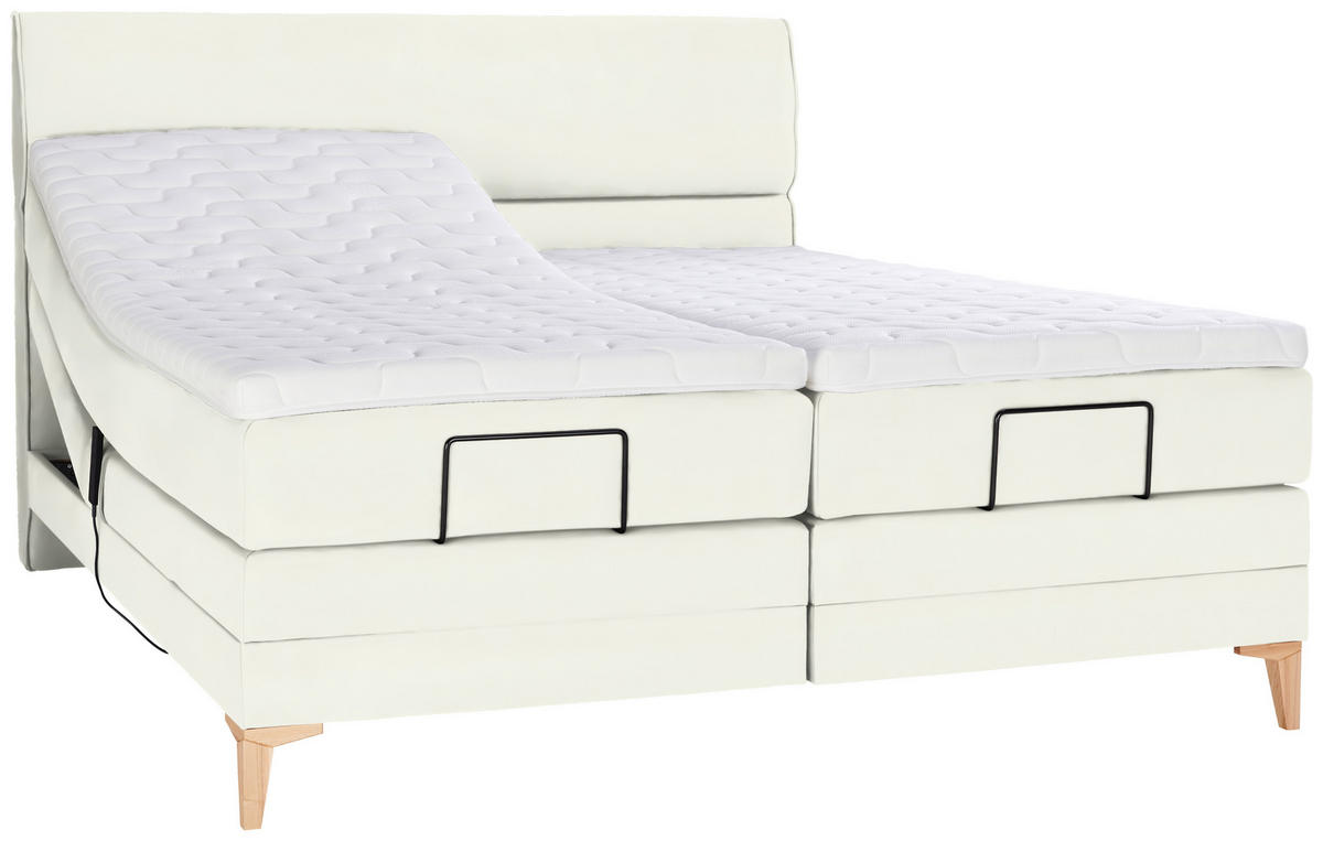 Eichefarben, die ebenso offene Bodenfreiheit schaffen, Teil einer stringenten Designlogik. Genießen Sie pure Gemütlichkeit in diesem Boxspringbett (ca. 160 x 200 cm) in Weiß inklusive Matratze, Topper,
