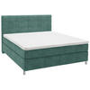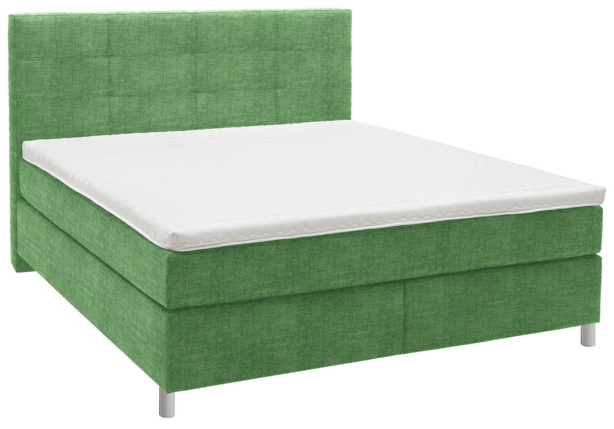 Chromfarben setzen stylishe Akzente. Relax-Mode on: Entdecken Sie, wie sich erholsamer Schlaf wirklich anfühlt, mit diesem Boxspringbett (ca. 200 x 200 cm) in Grün inklusive Matratze, Topper und gepolstertem Kopfteil!
