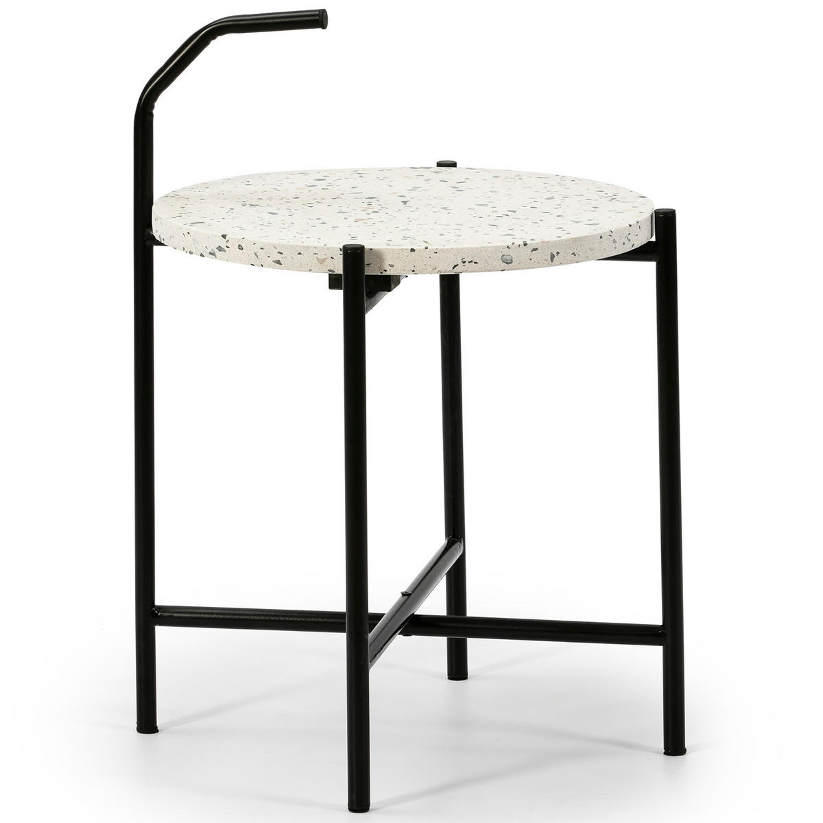 Material: Weiße Terrazzoplatte und mattschwarze Metallbeine.