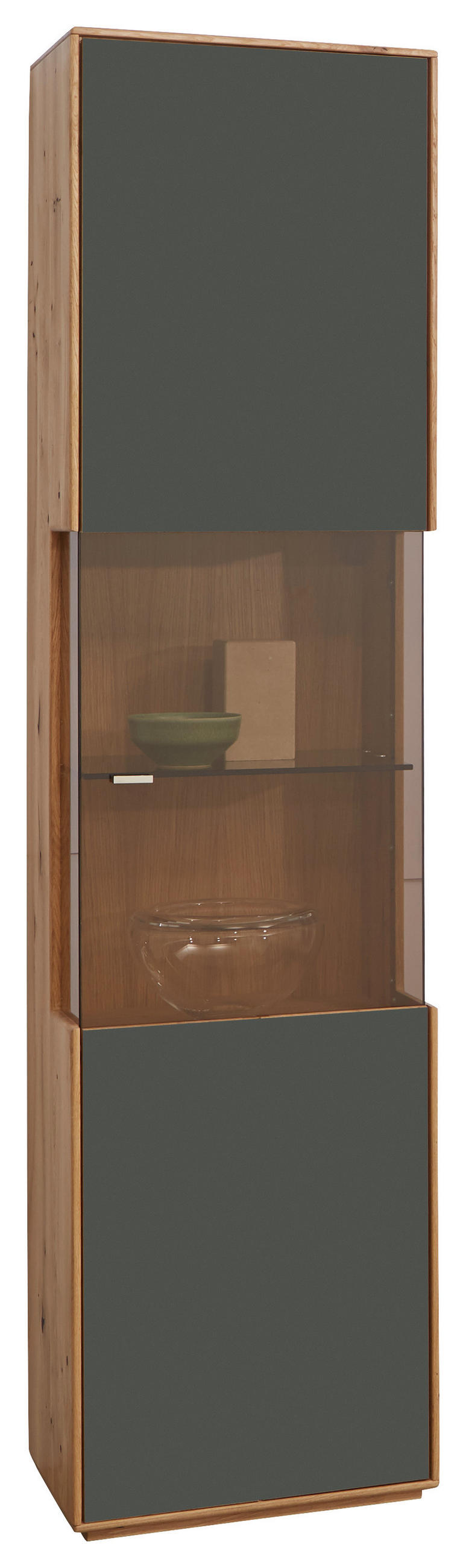 VITRINE in furniert, massiv Wildeiche Grau, Wildeiche