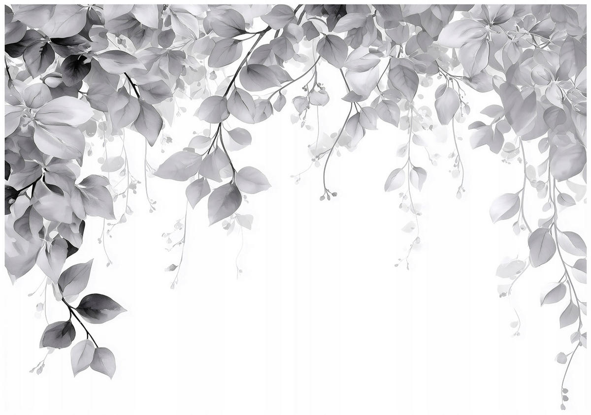 Fototapete Blätter Hängend Grau 400x280 cm - Vlies Fototapete mit KleisterFOTOTAPETE FÜR WOHNZIMMER UND SCHLAFZIMMER : Sie zeichnen sich durch ihre Formstabilität und Strapazierfähigkeit aus, was sie zur idealen Wahl für jede Wand in Ihrem Zuhause macht. Egal ob im Wohnzimmer, Schlafzimmer, Büro oder in der Küche, diese Fototapeten verleihen jedem Raum eine stilvolle und beeindruckende Atmosphäre..