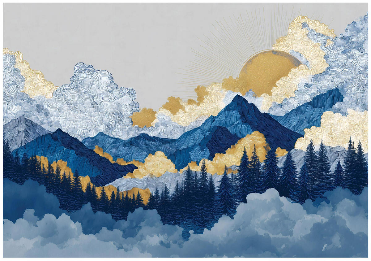 FOTOTAPETE Gebirge Aquarell Blau 400x280 cm - Multicolor, Papier (400/280cm) - Wallarena