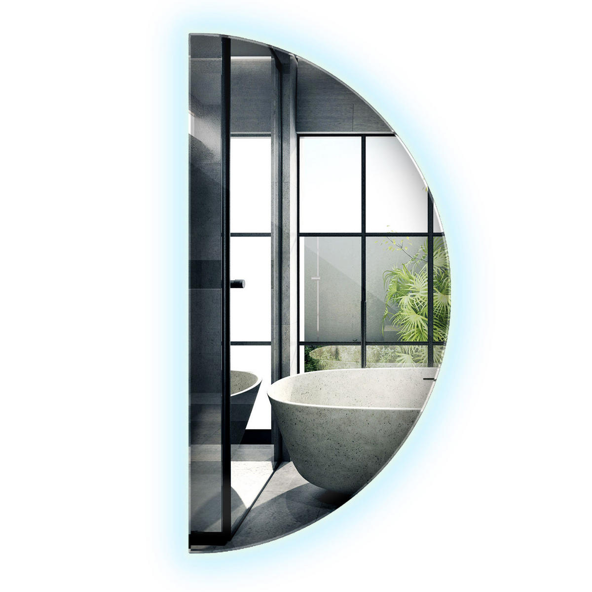 Suchbegriffe: halbrunder Spiegel, LED Spiegel halbrund, Badspiegel LED, Spiegel mit Beleuchtung, Wandspiegel modern, Designer Spiegel, Spiegel für Badezimmer, Spiegel minimalistisch