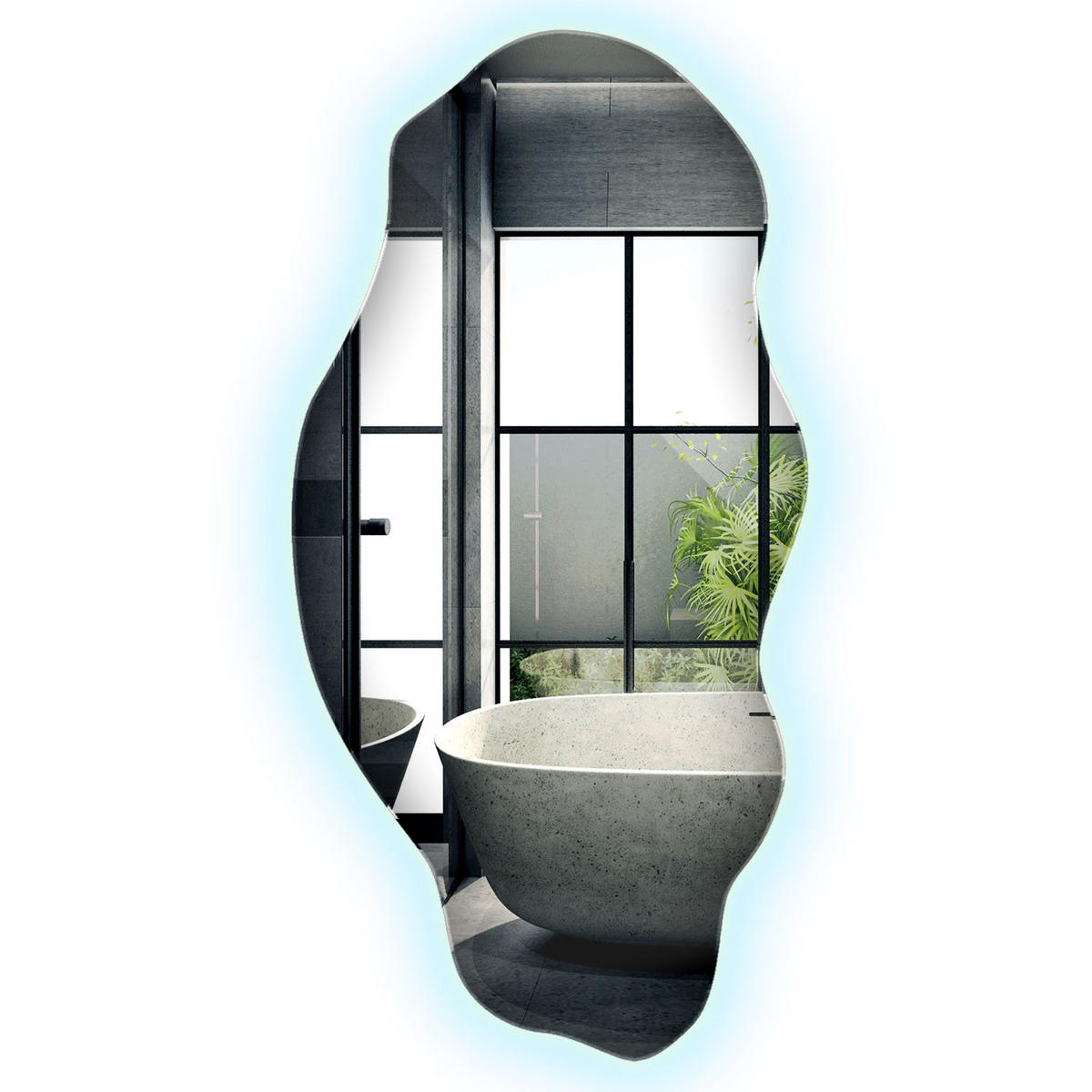 LED-SPIEGEL 50x100 cm Asymmetrisch Kaltweiß 6000K - Blau, Glas (50/100/0.4cm) - Wallfluent
