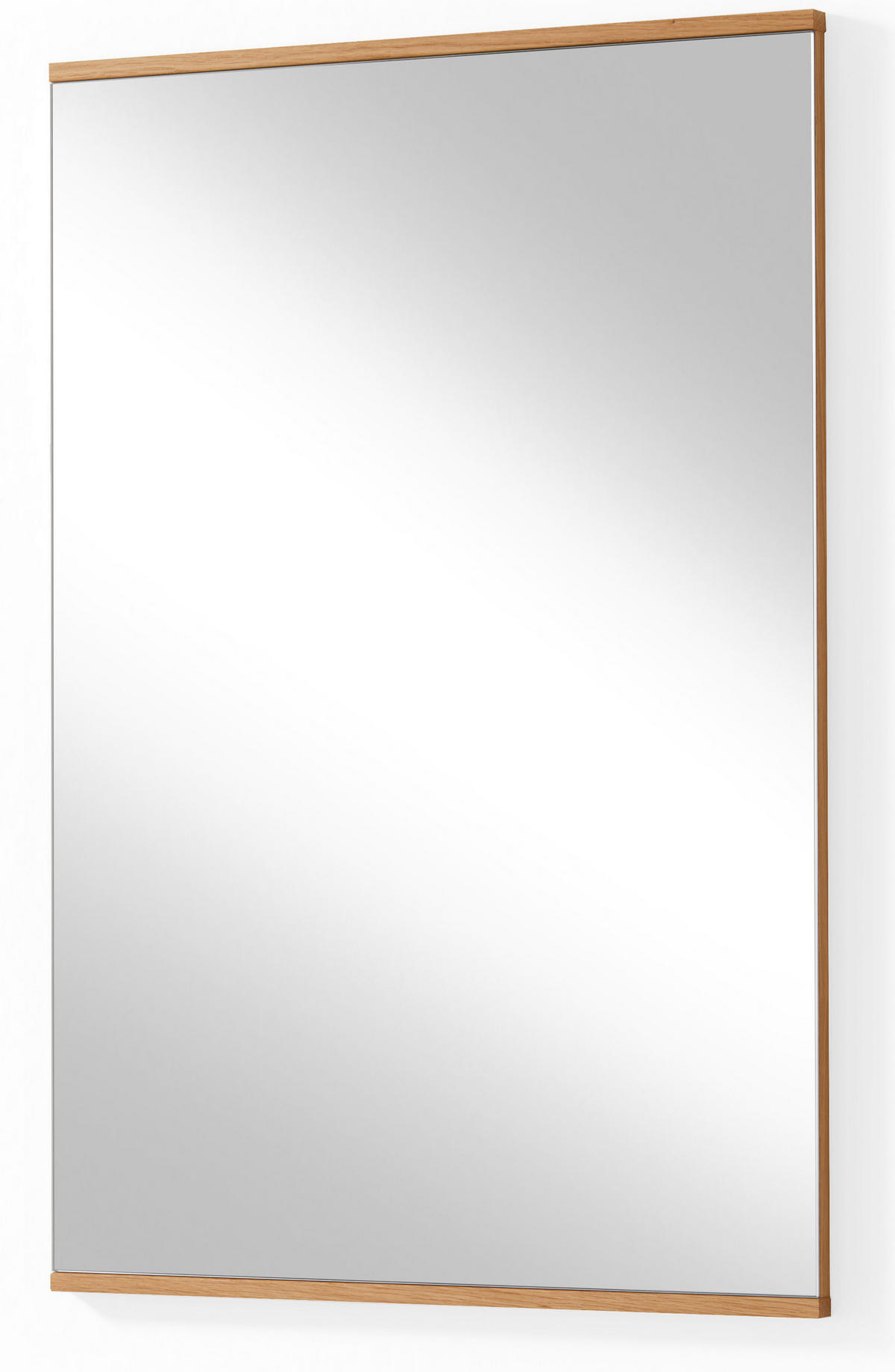 Mit diesem auf die Garderobenmöbel aus derselben Serie abgestimmten NOVEL Spiegel mit Holzrahmen aus Eiche massiv planen Sie Ihre Einrichtung harmonisch bis ins Detail. Der schmale Rahmen fasst die Spiegelfläche oben und unten dezent ein und strahlt zurückhaltende Rustikalität aus. Zugleich sorgt die klare Formensprache für einen modernen Touch. Komplettieren Sie Ihr Entrée mit diesem ca. 56 x 82 cm (B x H) großen Spiegel mit Holzrahmen aus Eiche massiv!