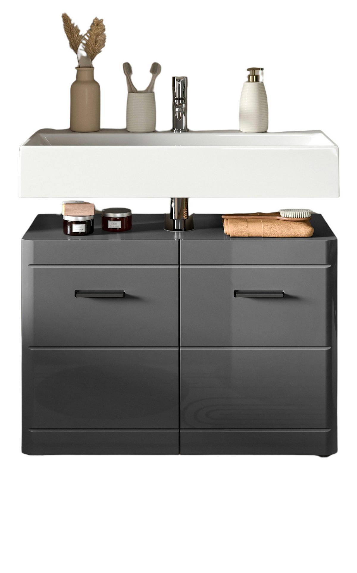 WASCHBECKENUNTERSCHRANK grau Hochglanz 80 cm mit Soft-Close