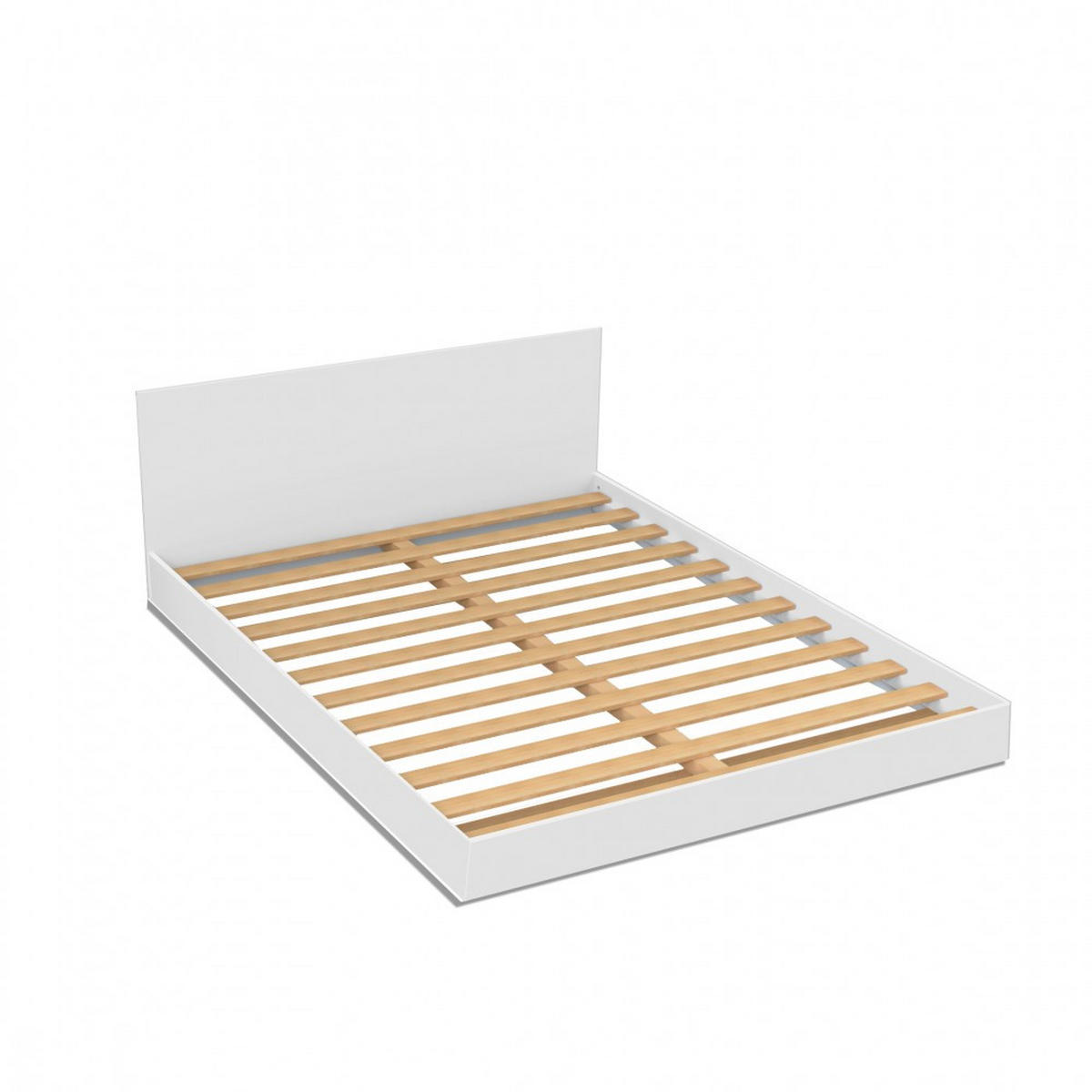 Bett LOFT 140x190 cm Mit seinem klaren, zeitlosen Design und den unter dem Lattenrost versteckten Füßen, die ihm den Eindruck des Schwebens verleihen, wird Sie das LOFT-Bett begeistern. Ob Sie nun einen modernen, böhmischen oder skandinavischen Stil bevorzugen, es wird sich leicht in Ihre Einrichtung integrieren lassen.Merkmale: Struktur aus Spanplatte. 12 Multiplex-Latten, Querschnitt 70x8mm. Ausführung: weiß.Wird zerlegt mit einem Lattenrost geliefert.