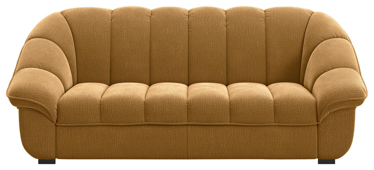 Im Lieferumfang enthalten: Wenn dieses senfgelbe 3-Sitzer-Sofa mit Chenille-Bezug bei Ihnen einzieht, dreht sich alles um Behaglichkeit!