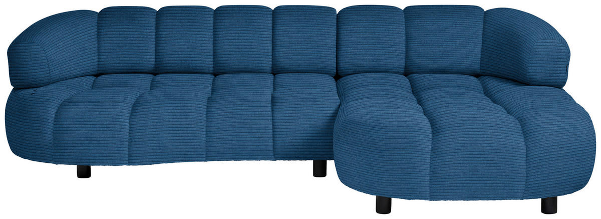 Im Lieferumfang enthalten: Wo eine ausgeglichene Life-Balance und häusliches Wohlempfinden gefragt sind, führt an diesem blauen Ecksofa mit Cord-Velours-Bezug kein Weg vorbei!