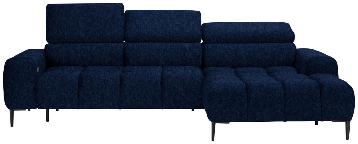 Als treue Begleitung für wonnige Time-outs daheim gesellt sich dieses dunkelblaue Ecksofa mit Samt-Webstoff-Bezug gerne zu Ihnen!