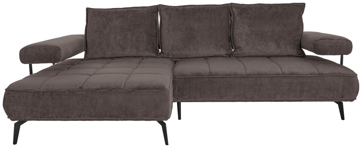 Verwöhnen Sie sich selbst mit diesem dunkelbraunen Ecksofa mit Webstoff-Bezug!