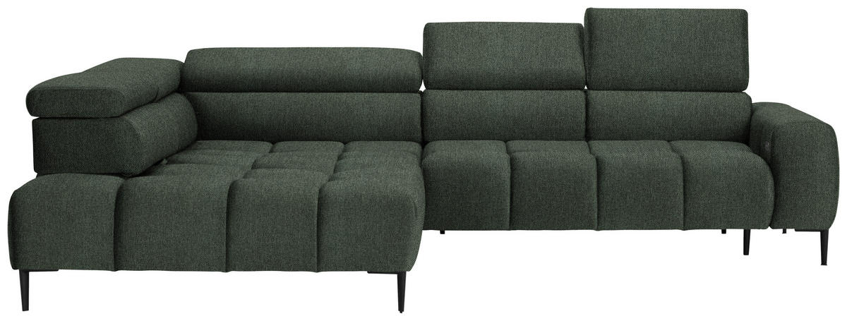 Ein It-Piece, das Ihren Erwartungen gerecht wird: Dieses dunkelgrüne Ecksofa mit Webstoff-Bezug tut einiges fürs individuelle Wohnglück!