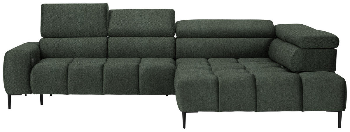 Dieses dunkelgrüne Ecksofa mit Webstoff-Bezug zaubert Ihnen bei jeder Gelegenheit zum Ausspannen ein Lächeln ins Gesicht!