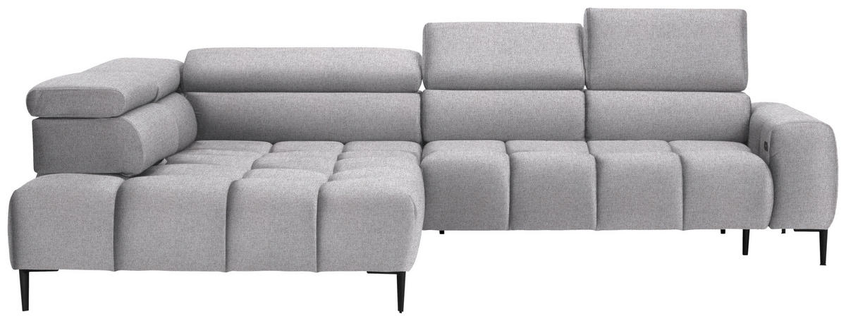 Genießen Sie Ihr Rendezvous mit der wohligen Unbeschwertheit des Seins auf diesem hellgrauen Ecksofa mit Webstoff-Bezug!