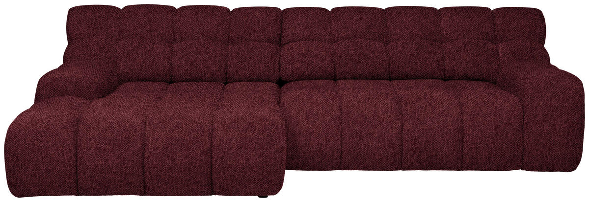 Können Sie sich etwas Besseres vorstellen als auf diesem bordeauxroten Ecksofa mit Webstoff-Bezug alles um sich herum zu vergessen?
