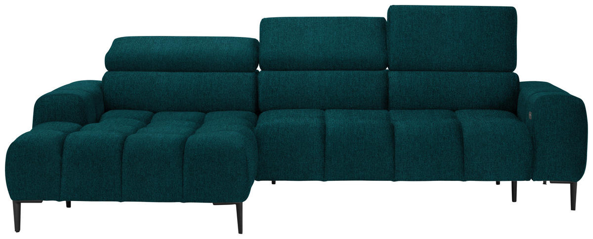 Können Sie sich etwas Besseres vorstellen als auf diesem petrolfarbenen Ecksofa mit Webstoff-Bezug alles um sich herum zu vergessen?