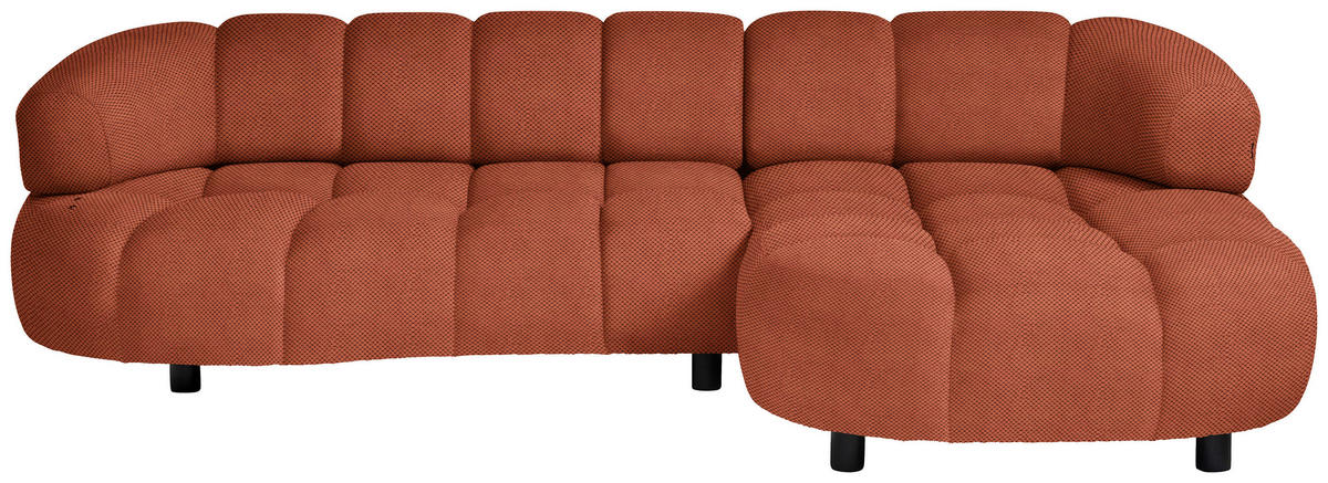 Im Lieferumfang enthalten: Genießen Sie Ihr Rendezvous mit der wohligen Unbeschwertheit des Seins auf diesem rostroten Ecksofa mit Webstoff-Bezug!