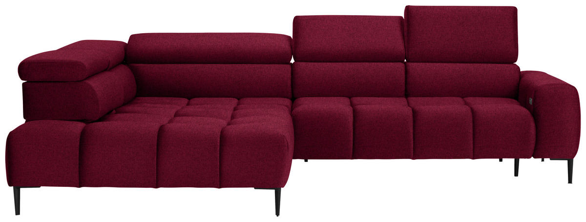 Ein It-Piece, das Ihren Erwartungen gerecht wird: Dieses rote Ecksofa mit Webstoff-Bezug tut einiges fürs individuelle Wohnglück!