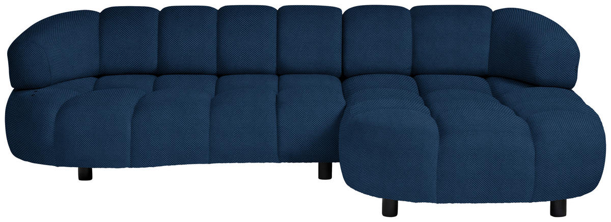 Im Lieferumfang enthalten: Ein royalblaues Ecksofa mit Webstoff-Bezug als Erfolgsgarant für Ihre Well-Being-Strategie @home!