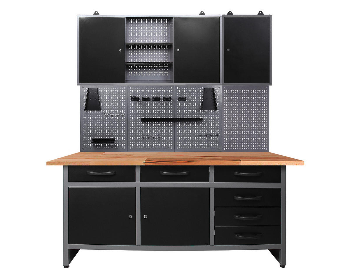 Werkbankset (160 cm breit) in Anthrazit und Grau fürs Arbeiten mit System