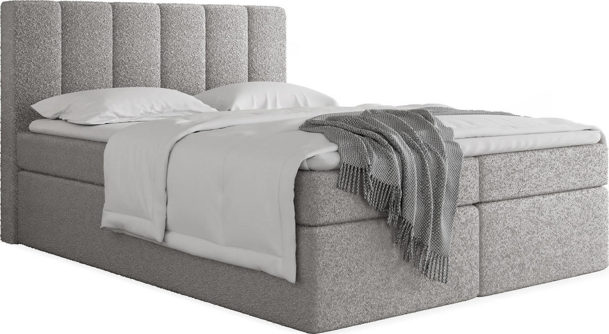 BOXBETT Amira mit Bettkasten, Boucle Grau 120/200 cm – 7-Zonen Taschenfederkern-Matratze & Komfortschaum-Topper - Hellgrau/Schwarz, Holzwerkstoff/Kunststoff (120/200cm) - WFL GROUPWFL GROUP