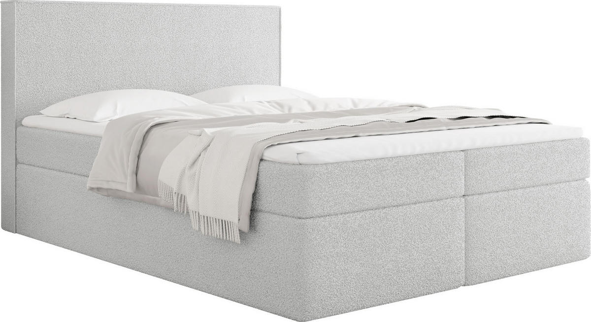 BOXBETT Terra mit Bettkasten, Boucle Grau 120/200 cm – 7-Zonen Taschenfederkern-Matratze & Komfortschaum-Topper - Hellgrau/Grau, Holzwerkstoff/Kunststoff (120/200cm) - WFL GROUPWFL GROUP