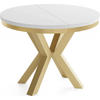WFL GROUP ESSTISCH Clara Gold runder ausziehbarer, Marmor Weiß 120-200/120/76 cm