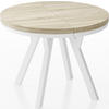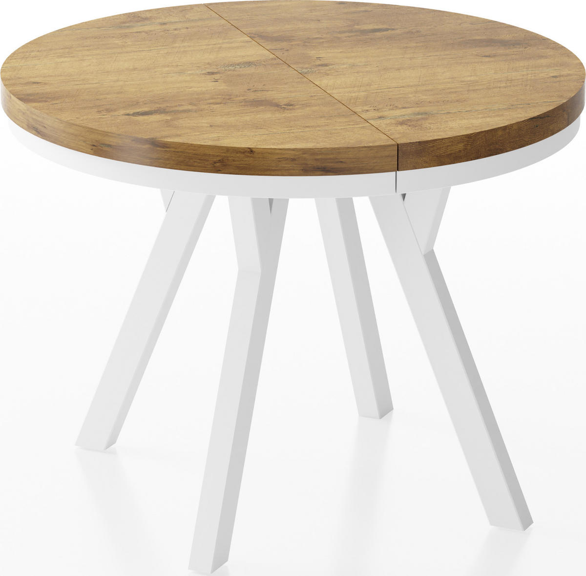 WFL GROUP ESSTISCH Lume Weiß runder ausziehbarer, Lancelot Eiche 90-170/90/76 cm