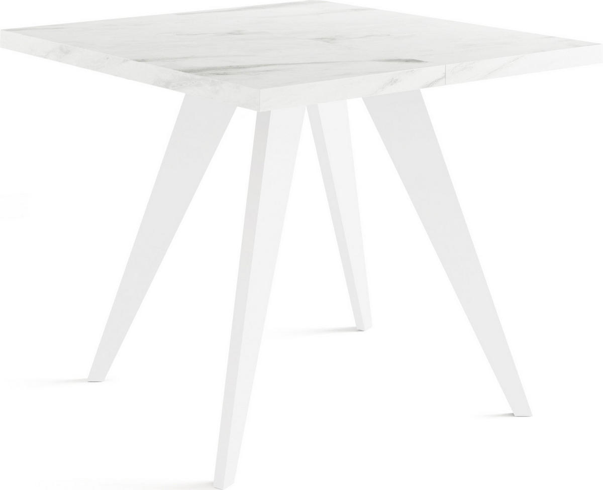 MODERNES UND FUNKTIONELLES DESIGN – Quadratischer Esstisch mit weißen Metallbeinen, der perfekt für industrielle und minimalistische Innenräume geeignet ist