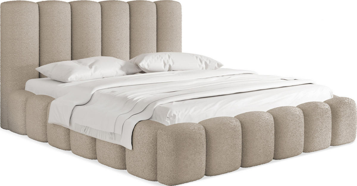 WFL GROUP POLSTERBETT Serenity mit Bettkasten, Beige Boucle 160x200 cm