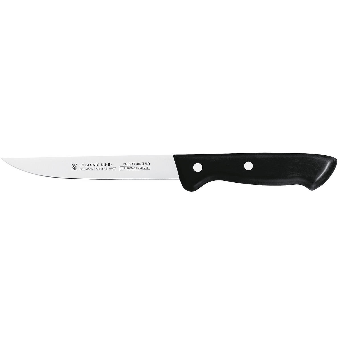 Das WMF Zubereitungsmesser aus der "Classic Line" besticht durch die glatte Schneide und ist äußerst vielseitig einsetzbar - ob zum Schneiden von Fleisch, Fisch, Gemüse oder Obst. Entscheidendes Merkmal: Die Klinge ist mit ca. 14 cm im Vergleich zu anderen Küchenmessern recht lang und unterstützt Sie gekonnt bei der täglichen Küchenarbeit. Besonders beim Filetieren von Fisch ist das Messer ein echter Gewinn. Der ergonomische Griff liegt hervorragend in der Hand und bietet damit beste Voraussetzungen im Alltag. Durch den geschmiedeten Spezialklingenstahl bleibt die Schärfe über die gesamte Klingenlänge konstant gut erhalten. Und nach dem Kochen? Zur einfachen Reinigung lässt sich das Messer einfach von Hand waschen. Ein kompaktes Messer mit vieeelen Möglichkeiten!