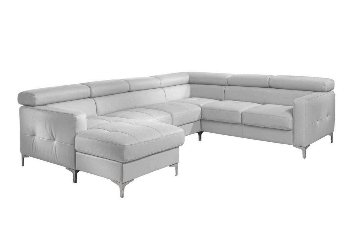 WOHNLANDSCHAFT aus Echtleder mit Schlaffunktion und Bettkasten - Chromfarben/Silberfarben, Leder/Holz (240/74/304cm) - Cotta