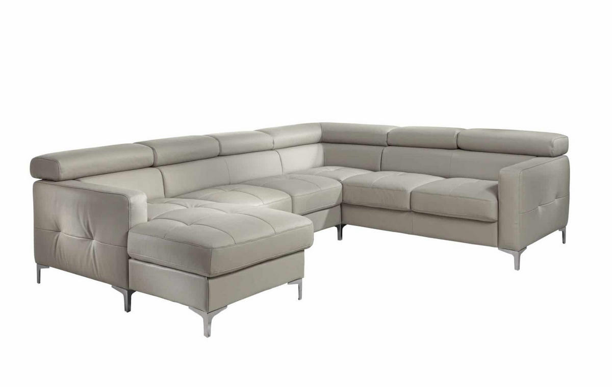 WOHNLANDSCHAFT aus Echtleder mit Schlaffunktion und Bettkasten - Chromfarben/Silberfarben, Leder/Holz (240/74/304cm) - Cotta