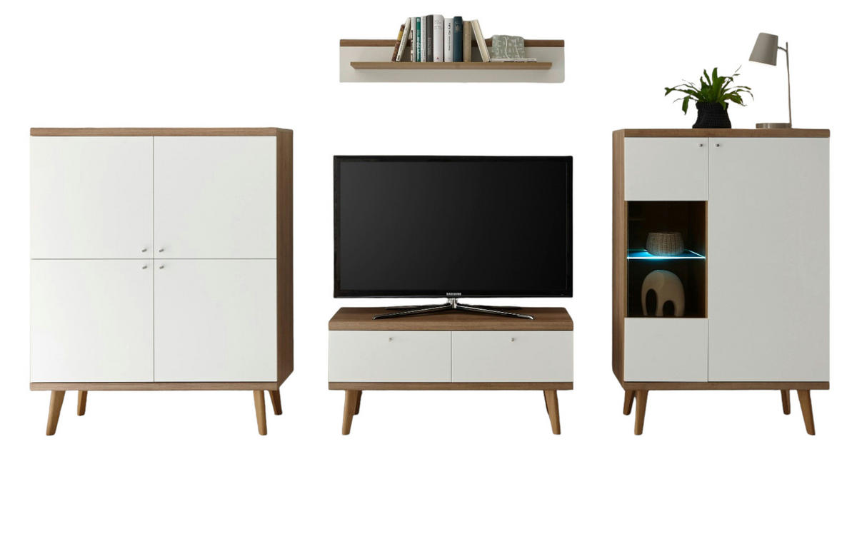 WOHNWAND weiß Eiche Riviera, Schrankwand skandinavisch 4-teilig 324 x 160 cm