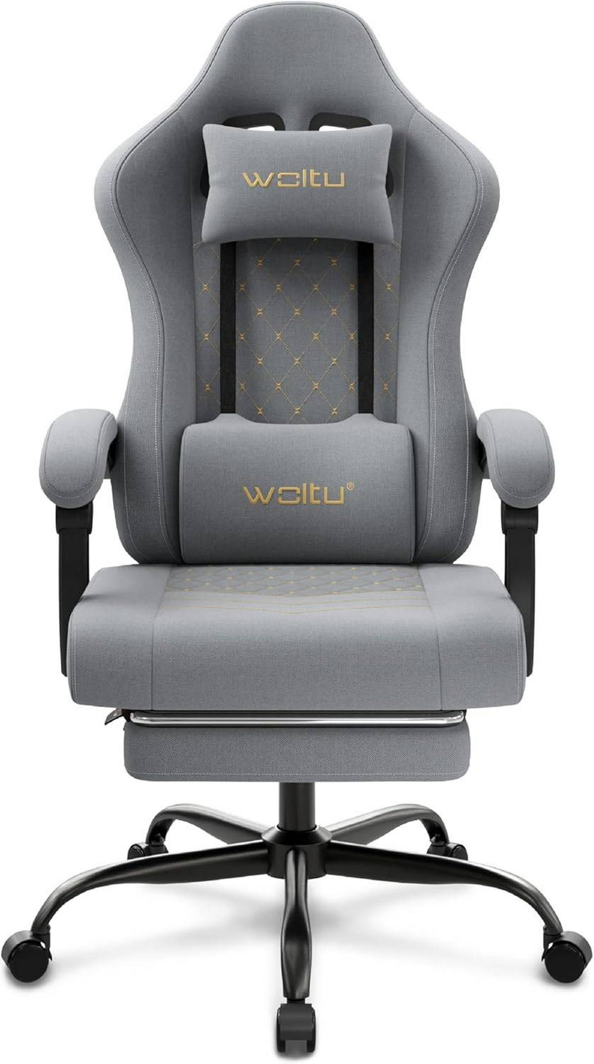 ERGONOMISCHES DESIGN: Verstellbares Kopf- und Lendenkissen, hoch Rückenlehne nach Wirbelsäulenform, 360° schwenkbarer höhenverstellbarer Sitz, Rückenlehne neigbar 90-145°, mitbewegliche Armlehnen und einziehbare Fußstütze – passt zu allen Körpertypen