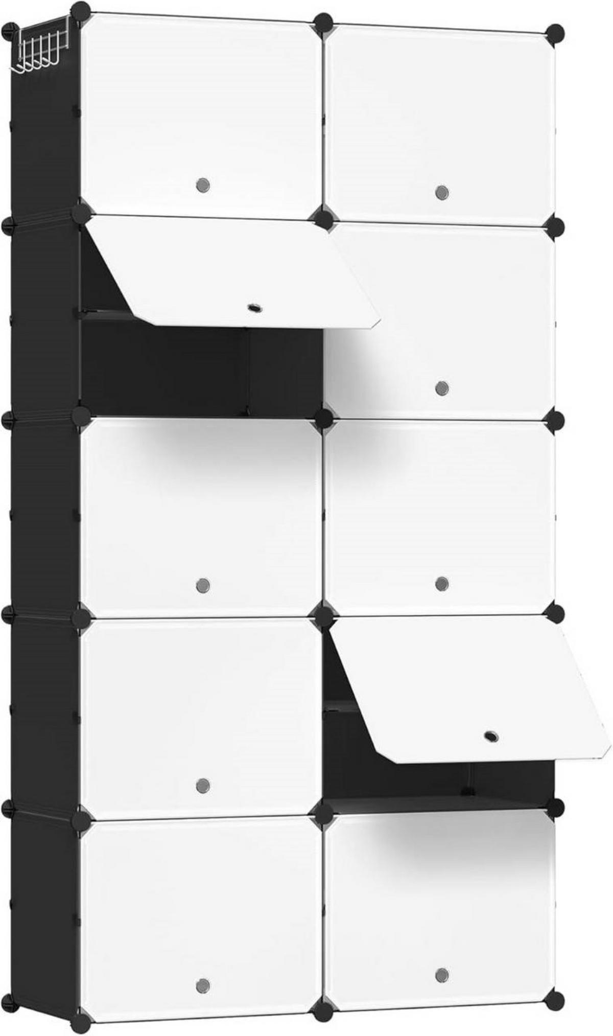 GROßARTIGE AUFBEWAHRUNGSLÖSUNG: 10 Fächer mit je 2 Ebenen für bis zu 40 Paar Schuhe. Trennwände entfernt, entstehen größere Fächer für Stiefel oder Plüschtiere. Seitliche Haken zum Aufhängen von Taschen, Schlüsseln, Regenschirmen usw.